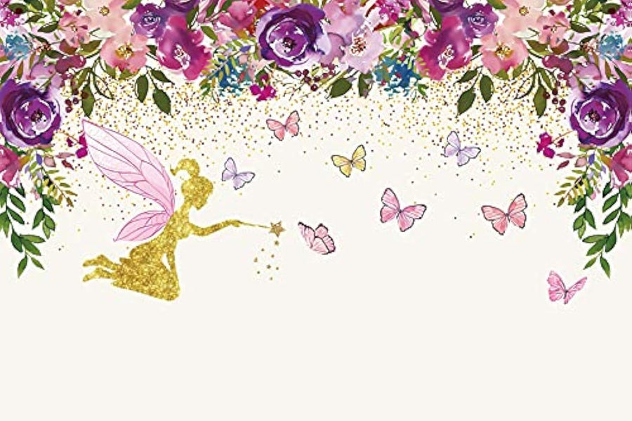Renaiss 3x2m Blumenfee Schmetterling Hintergrund für Fotografie Rosa Lila Blumen Hintergrund für Bab