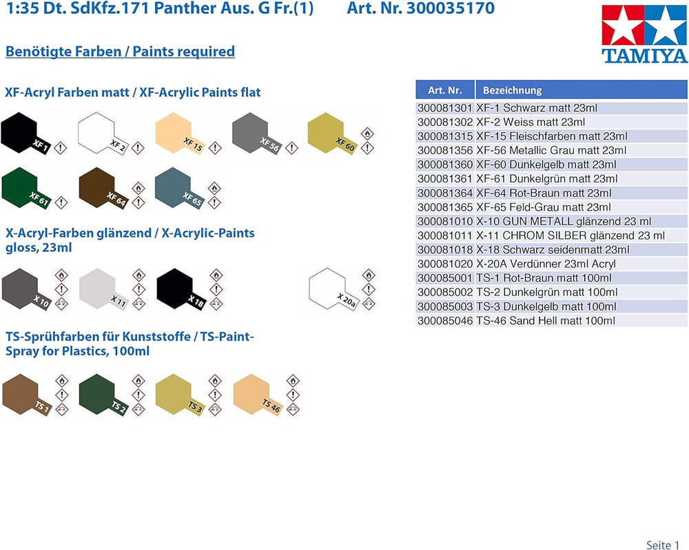 Tamiya TAM35170 Militär 300035170-1:35 WWII Sonderkraftfahrzeug 171 Panther Ausführung G FR (1), ori