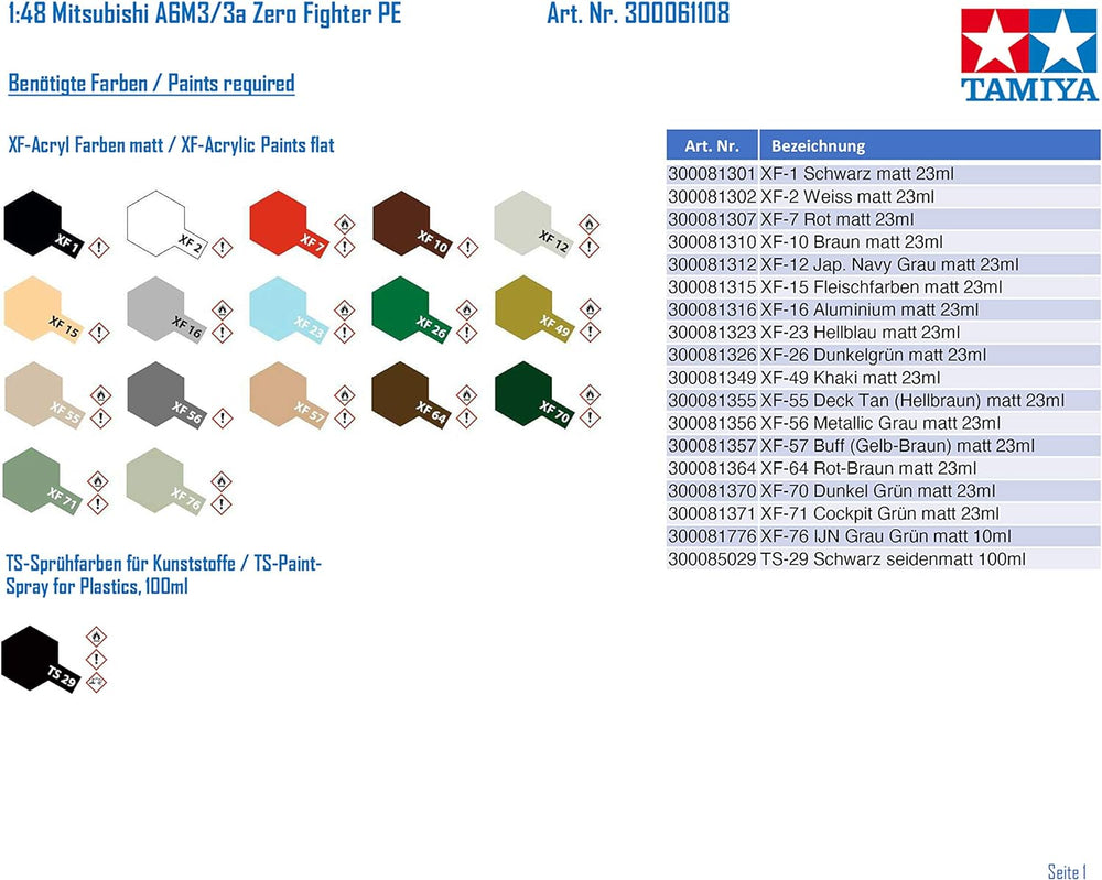 TAMIYA TAM61108 - 0.075 Mitsubishi A6M3/3a Zero Fighter PE Flugzeug - Plastikbausatz - Modellbau - o
