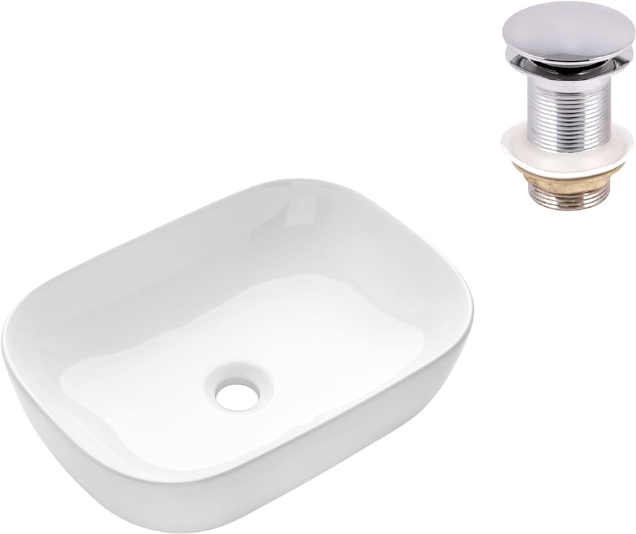 VBChome Waschbecken 41 cm Keramik Weiss Oval Pop-up ventil Click-Clack Waschtisch Handwaschbecken Au