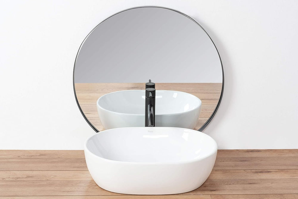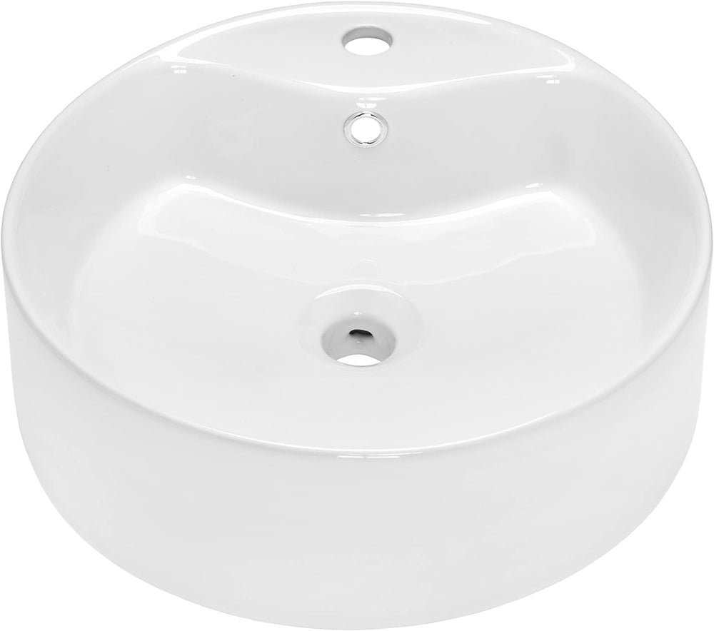 VBChome Waschbecken 41,5 cm Keramik Rund Weiss Oval Waschtisch Handwaschbecken Aufsatzwaschbecken Wa