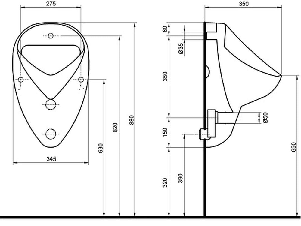 VBChome Urinal Keramik Zulauf Oben Weiss Modern Hochwertig Pinkelbecken senkrecht Pissoir Spülventil