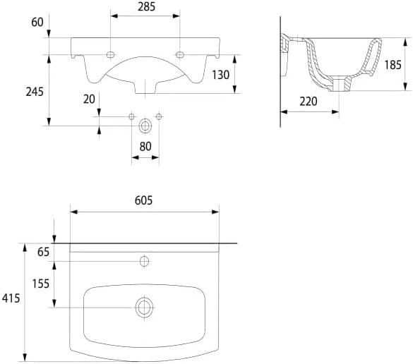 VBChome Waschbecken 59 x 39 cm Keramik Oval Waschtisch Handwaschbecken AUFSATZWASCHBECKEN WASCHSCHAL