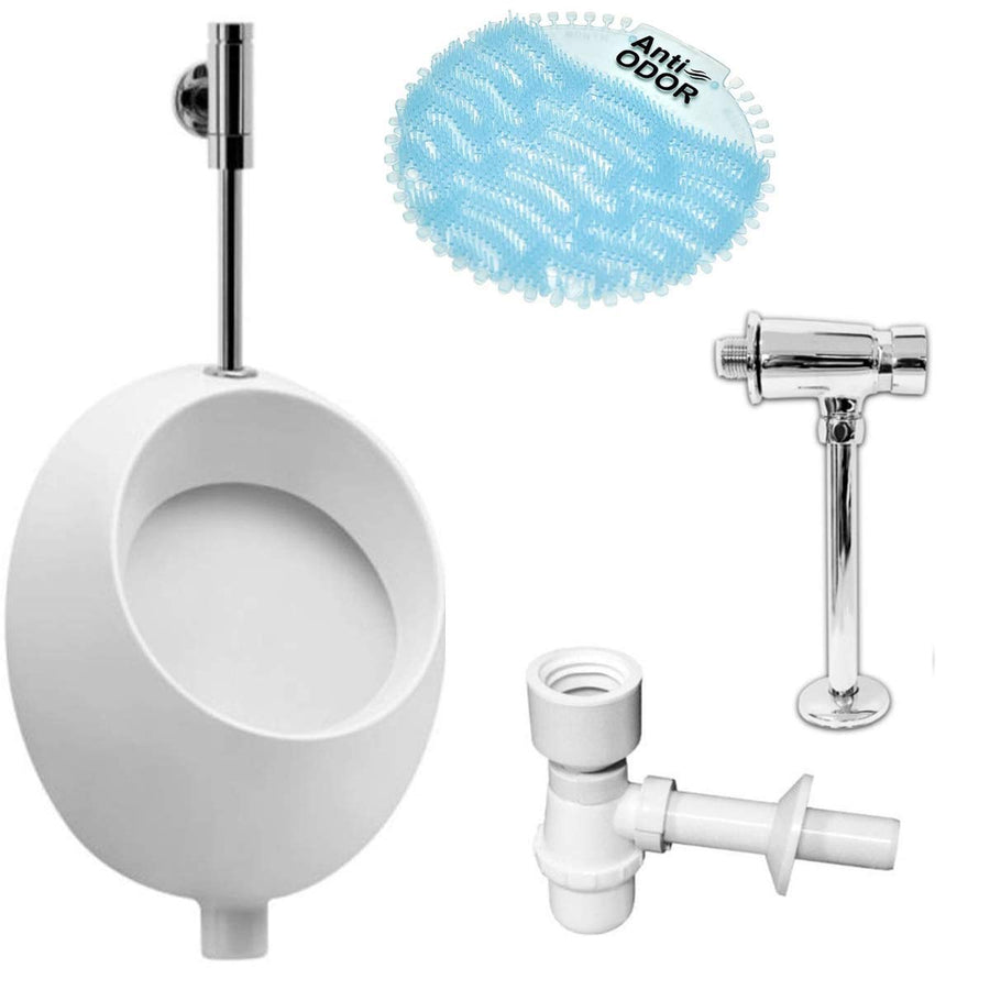 VBChome Urinal Zulauf Oben + Spülventil + Siphon Weiss Modern Hochwertig Keramik Pinkelbecken senkre
