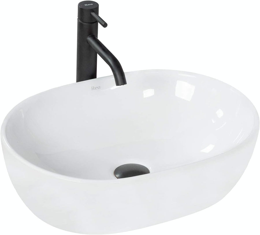 VBChome Waschbecken 50 x 38 cm Keramik mit Hahnloch Weiss Oval Waschtisch Rechteck Handwaschbecken A