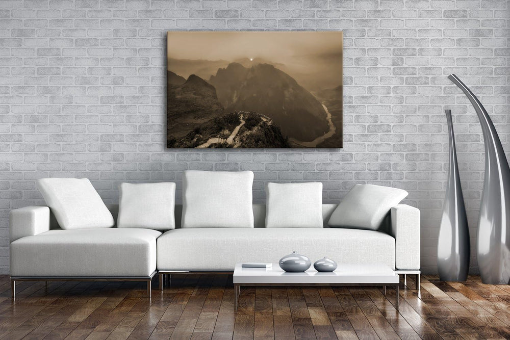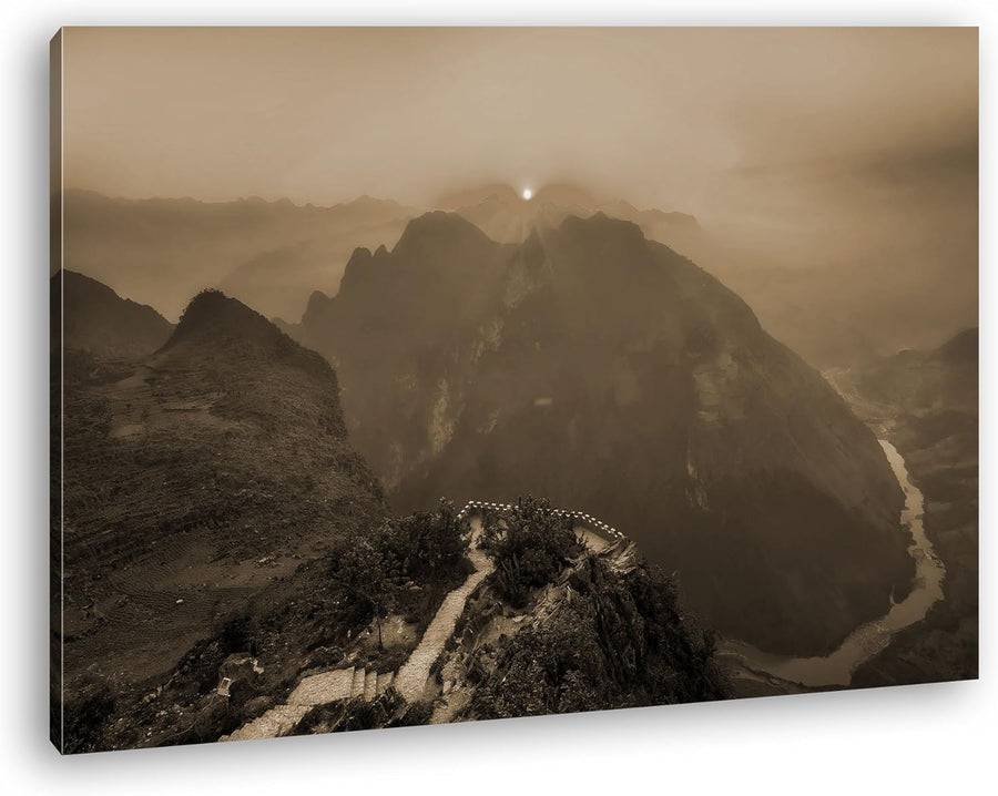 Fluss in den Bergen Vietnams Format: 80x60 Effekt: Sepia als Leinwand, Motiv fertig gerahmt auf Echt