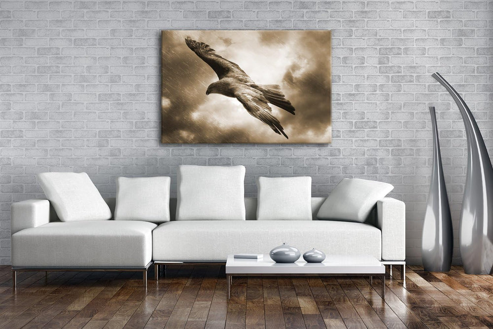 gewaltiger Adler in den Wolken Format: 80x60 Effekt: Sepia als Leinwandbild, Motiv fertig gerahmt au