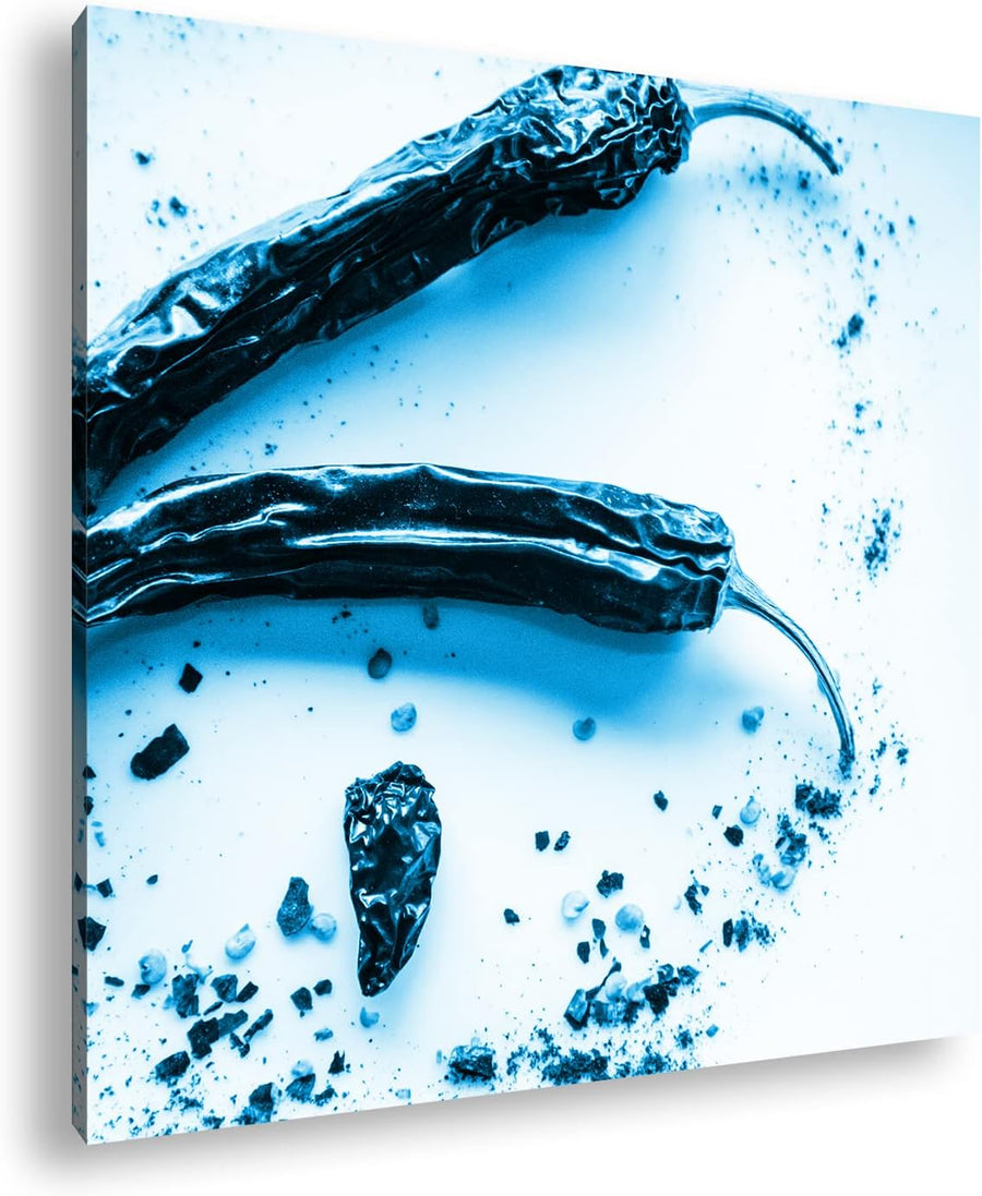 getrocknete extrem scharfe Peperoni Format: 60x60 Effekt: Monocrome Blau als Leinwandbild, Motiv fer