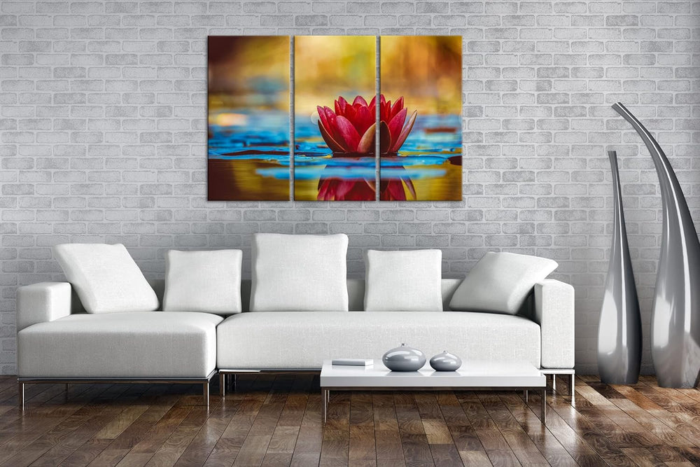 glorreiche Seerose Format: 3Teilig als Leinwandbild, Motiv fertig gerahmt auf Echtholzrahmen, Hochwe