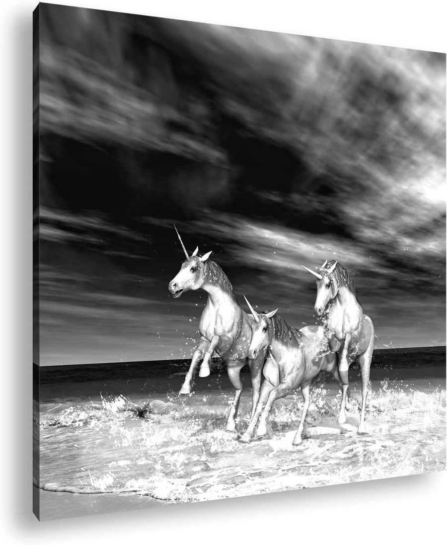 galoppierende Einhörner am Strand Format: 70x70 Effekt: Schwarz&Weiss als Leinwandbild, Motiv fertig