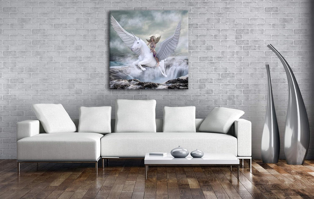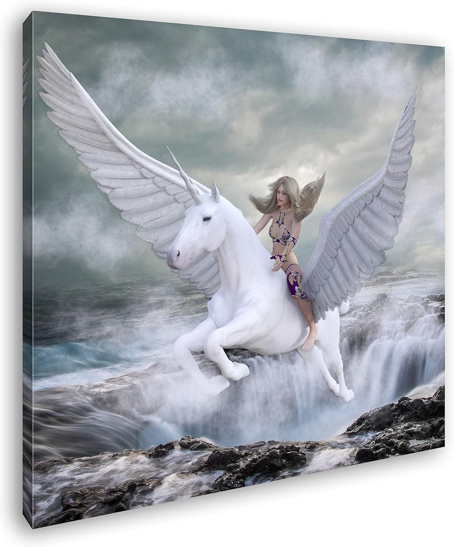 Frau auf dem edlen Pegasus Format: 70x70 als Leinwand, Motiv fertig gerahmt auf Echtholzrahmen, Hoch