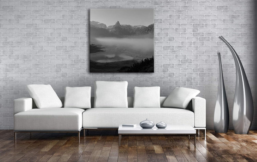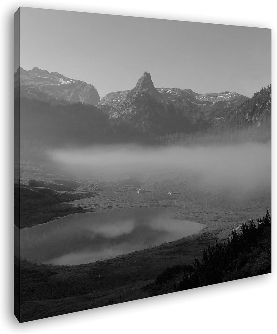 Funtensee im Nebel im Format: 60x60 Effekt: Schwarz&Weiss als Leinwandbild, Motiv auf Echtholzrahmen