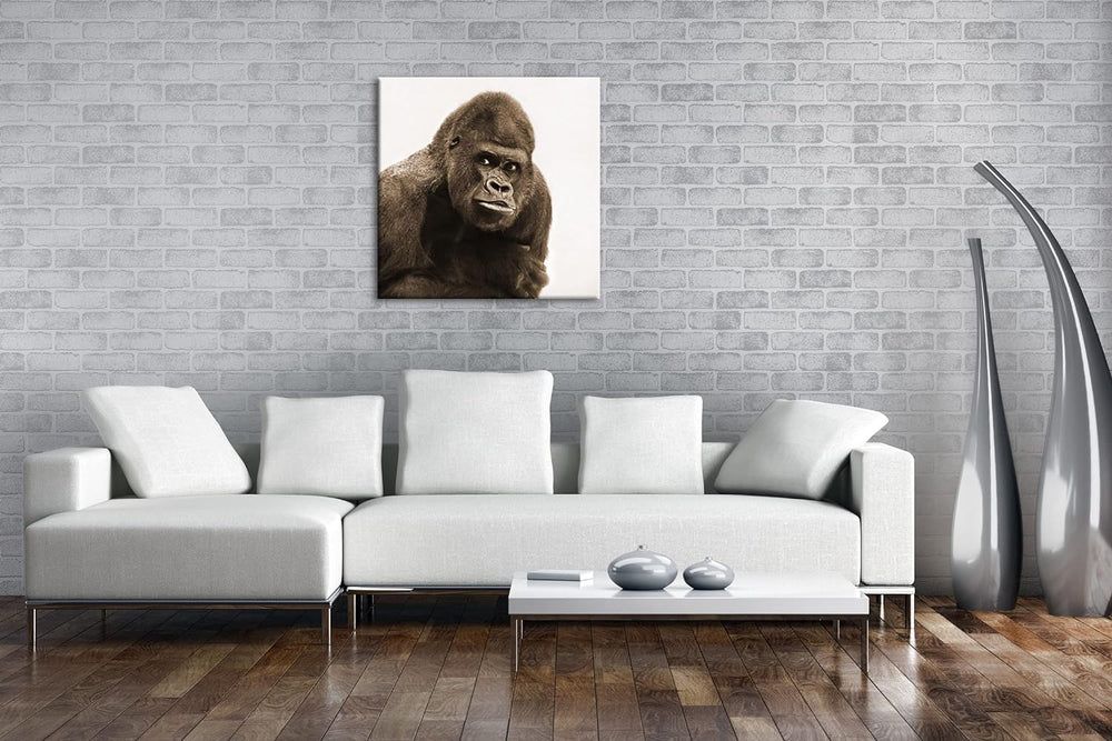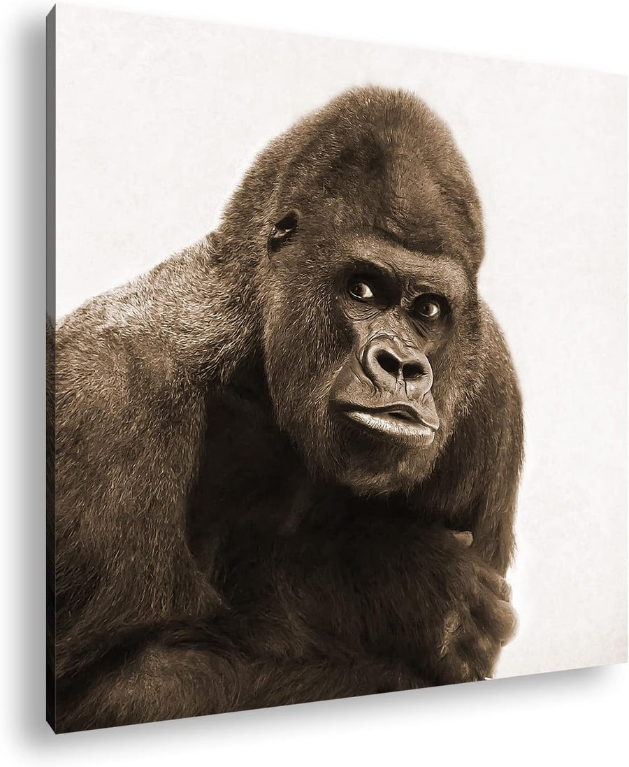 Gorilla Silberrücken Format: 70x70 Effekt: Sepia als Leinwandbild, Motiv fertig gerahmt auf Echtholz