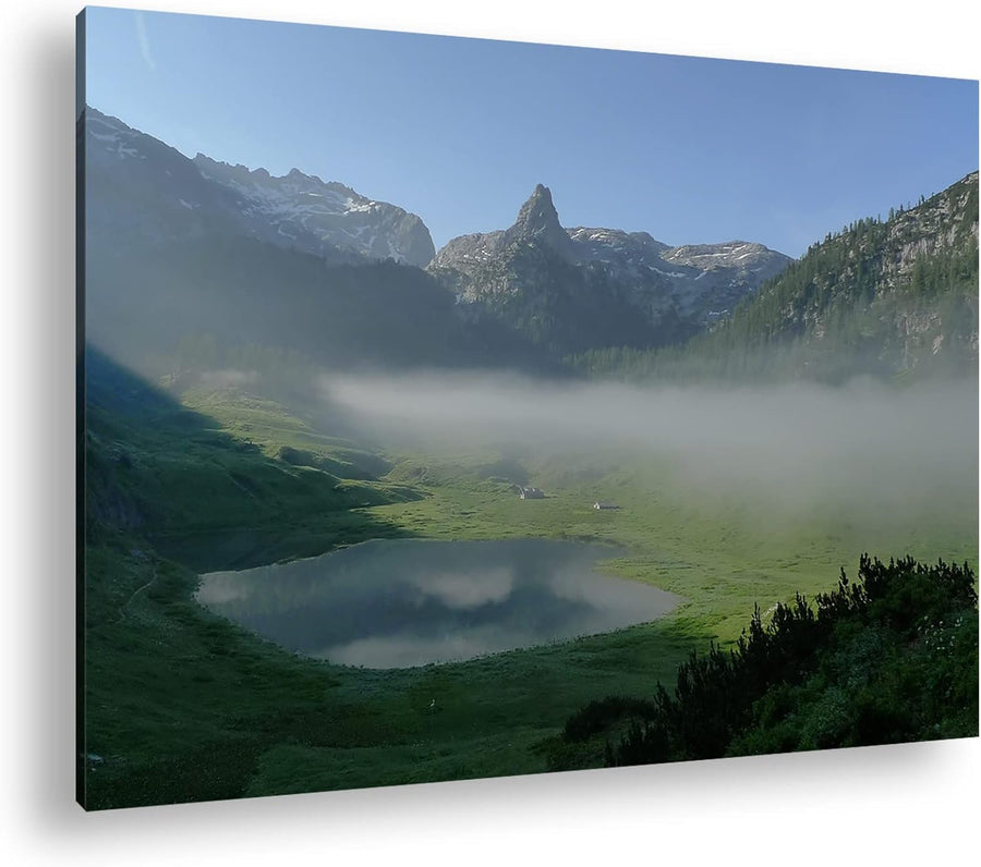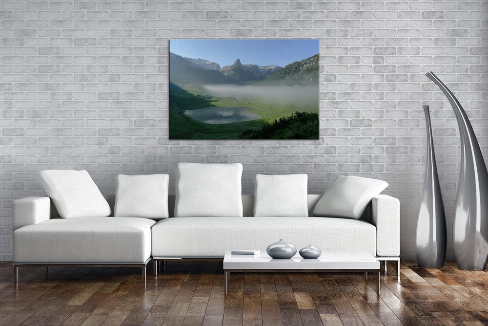 Funtensee im Nebel im Format: 80x60 als Leinwandbild, Motiv fertig gerahmt auf Echtholzrahmen, Hochw