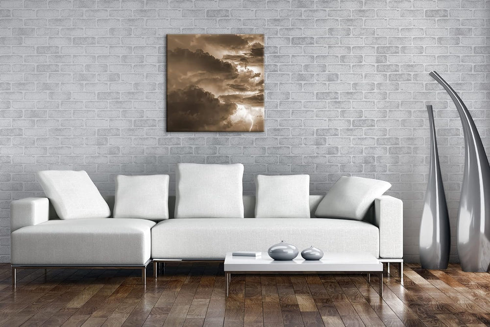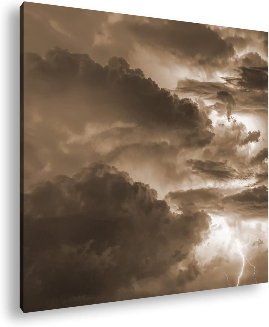 gewaltiges Gewitter Format: 70x70 Effekt: Sepia als Leinwandbild, Motiv fertig gerahmt auf Echtholzr