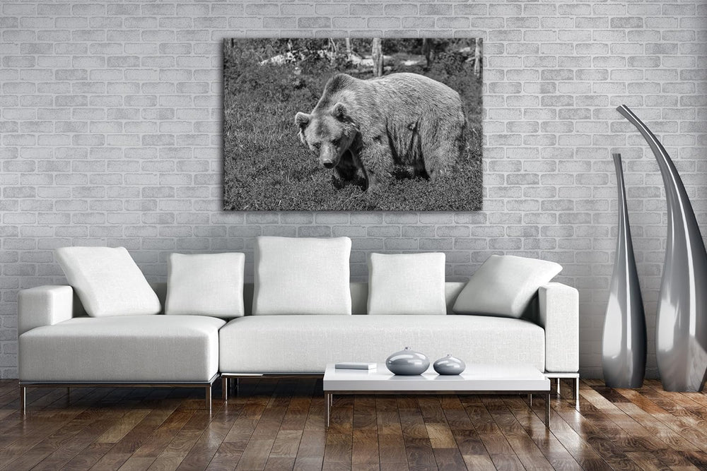 grosser Braunbär in der Natur Effekt: Schwarz/Weiss im Format: 80x60 als Leinwandbild, Motiv fertig