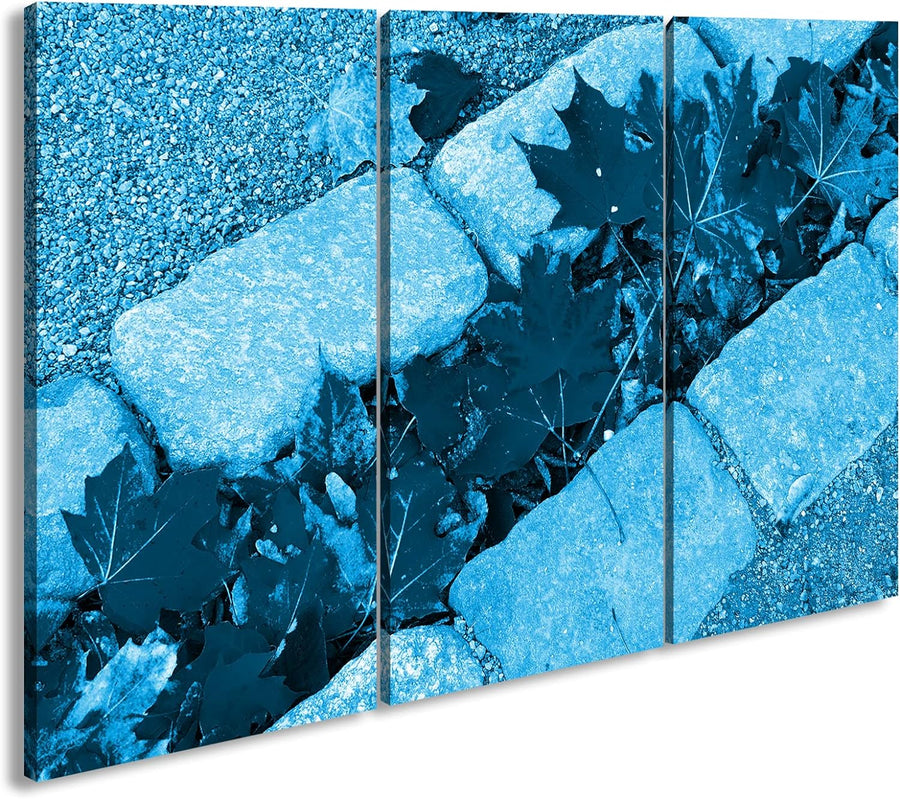 gelbe Ahornblätter auf dem Weg Format 120x80 3Teilig Effekt: Monocrome Blau als Leinwandbild, Motiv