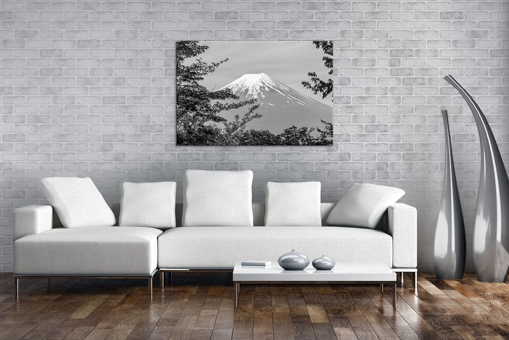 Fuji - der grösste Berg Japans Effekt: Schwarz&Weiss,Format: 80x60 als Leinwandbild, Motiv fertig ge