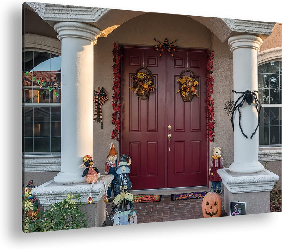 Halloween steht vor der Tür Format: 80x60 als Leinwandbild, Motiv fertig gerahmt auf Echtholzrahmen,