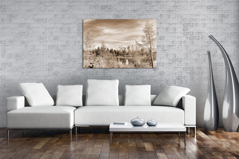 Herbstliche Berglandschaft der Dolomiten Format: 80x60 als Leinwand, Effekt: Sepia, Motiv fertig ger