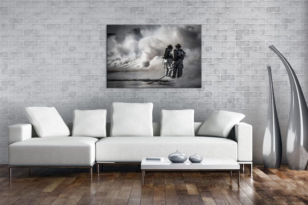 Helden des Feuers - Die Feuerwehr Format:90x60 cm als Leinwandbild, Motiv fertig gerahmt auf Echthol