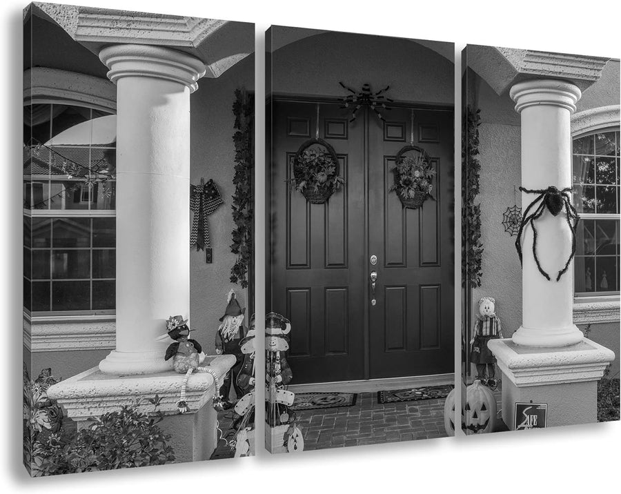 Halloween steht vor der Tür Effekt: Schwarz&Weiss,Format: 3Teilig als Leinwandbild, Motiv fertig ger