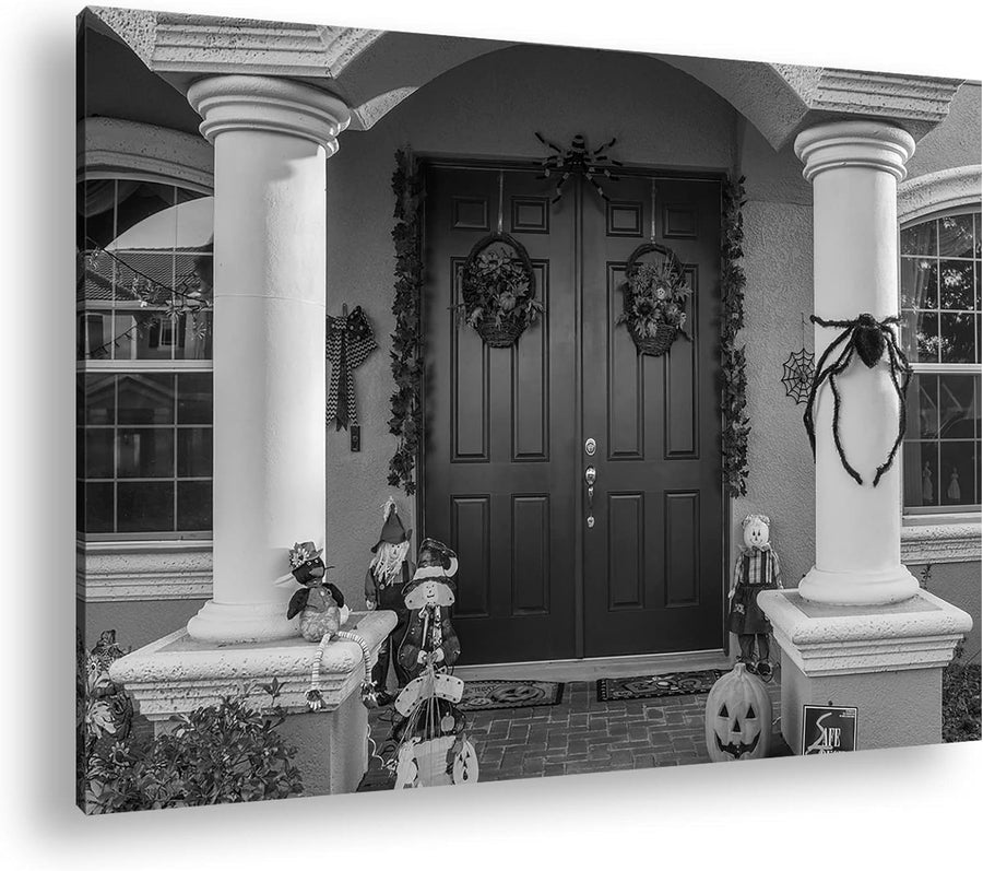 Halloween steht vor der Tür Format: 80x60 als Leinwand, Effekt: Schwarz&Weiss, Motiv fertig gerahmt