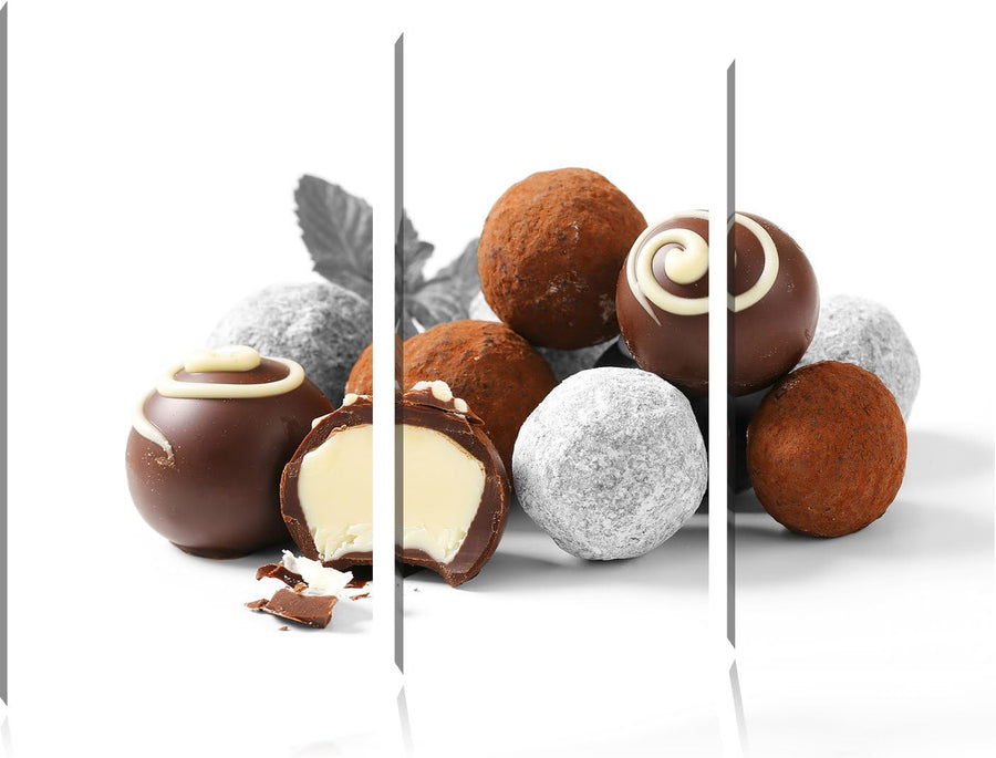 Pixxprint Edle Trüffelpralinen als Leinwandbild/Grösse: 3 Teilig (120x80) cm/Wandbild/Kunstdruck/fer