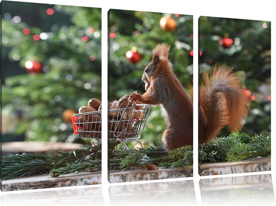 Pixxprint Eichhörnchen als Leinwandbild/Grösse: 3 Teilig (120x80) cm/Wandbild/Kunstdruck/fertig besp