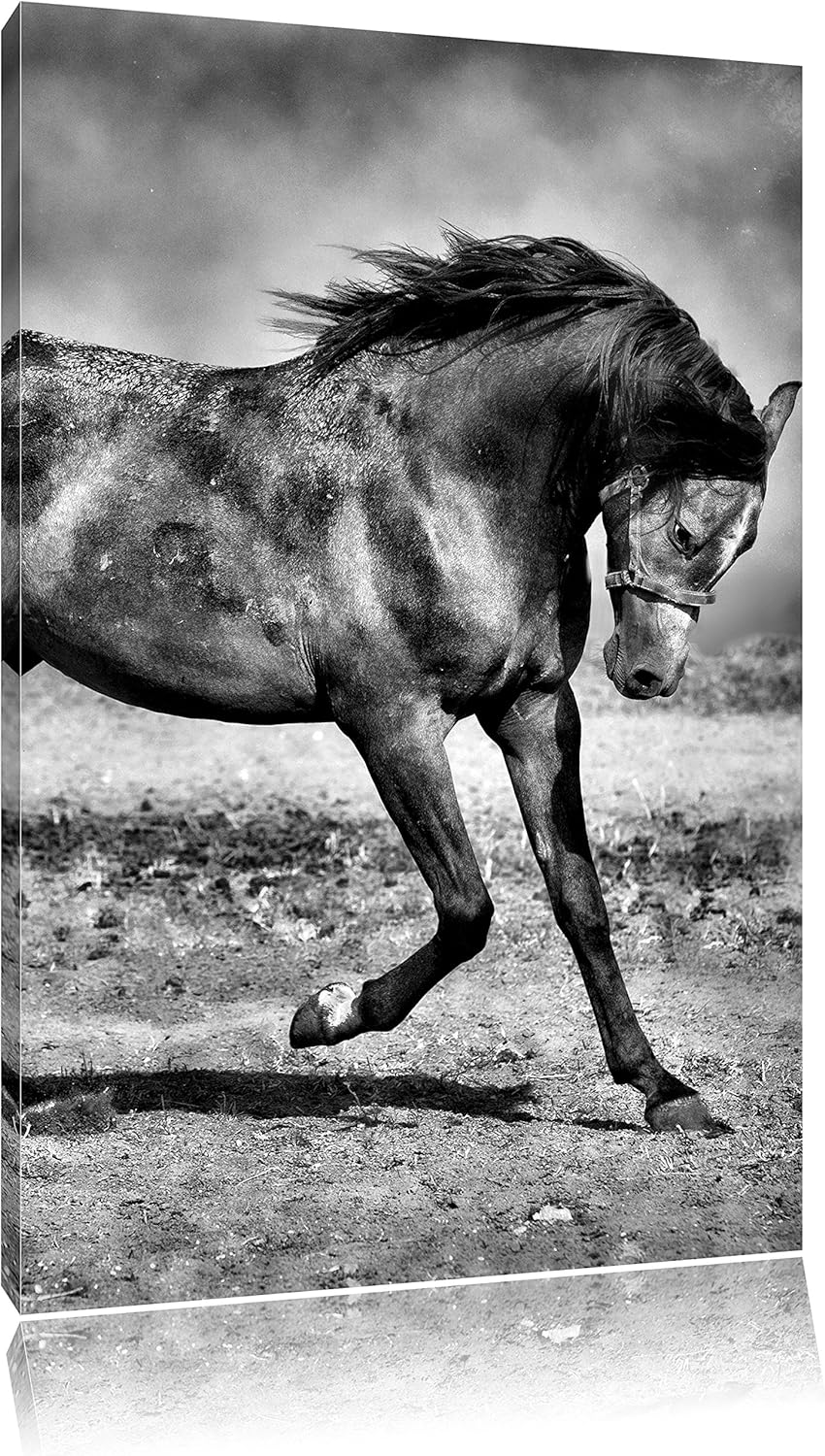 Pixxprint Edler schwarzer Hengst als Leinwandbild/Grösse: 100x70 / Wandbild/Kunstdruck/fertig bespan