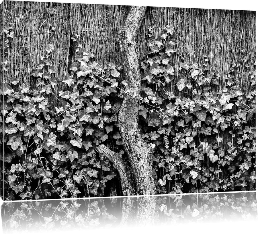 Pixxprint Efeuranken wachsen an Bäumen schwarz/weiss, Format: 70x70 auf Leinwand, 70x70