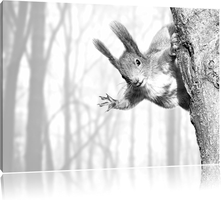 Pixxprint Eichhörnchen auf dem Baum / 100x70cm Leinwandbild bespannt auf Holzrahmen/Wandbild Kunstdr