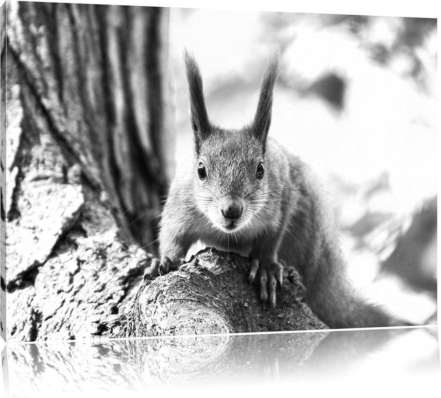 Pixxprint Eichhörnchen hinter Baumstamm als Leinwandbild/Grösse: 100x70 / Wandbild/Kunstdruck/fertig