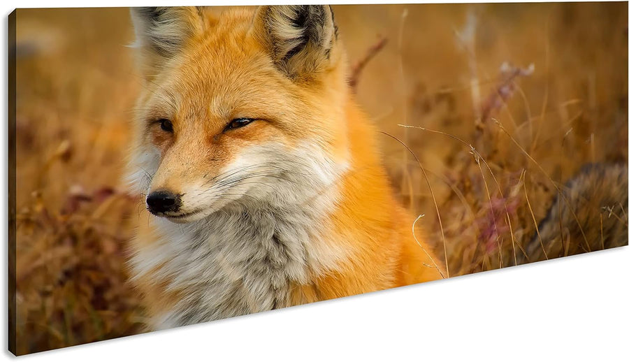 majestätischer Fuchs Panorama 80x40 cm als Leinwandbild, Motiv fertig gerahmt auf Echtholzrahmen, Ho
