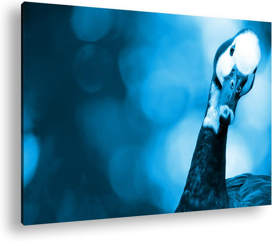 lustige Gans in der Natur Format 80x60 Effekt: Monocrome Blau als Leinwandbild, Motiv fertig gerahmt