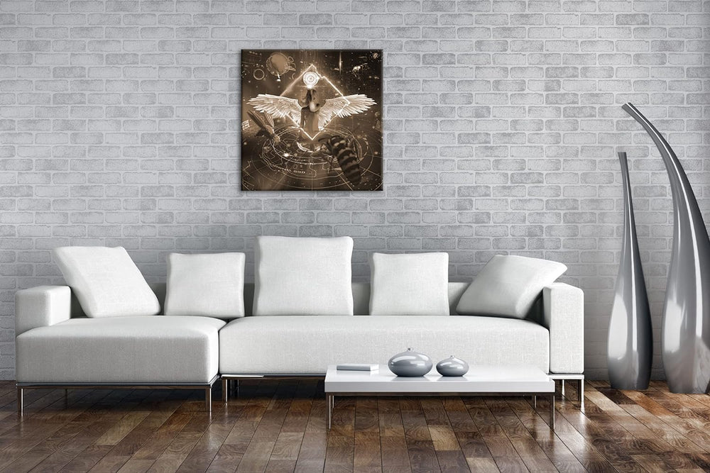 Neon Engel Effekt: Sepia Format: 70x70 als Leinwandbild, Motiv fertig gerahmt auf Echtholzrahmen, Ho