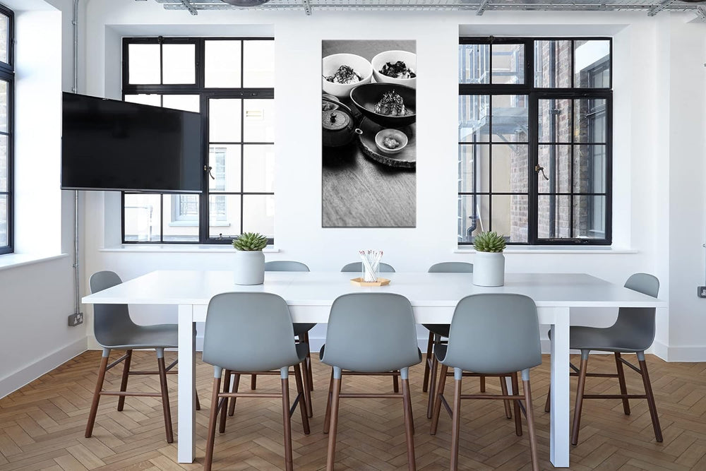 lecker angerichtetes Sushi Panorama 120x60 cm Effekt: Schwarz/Weiss als Leinwandbild, Motiv fertig g