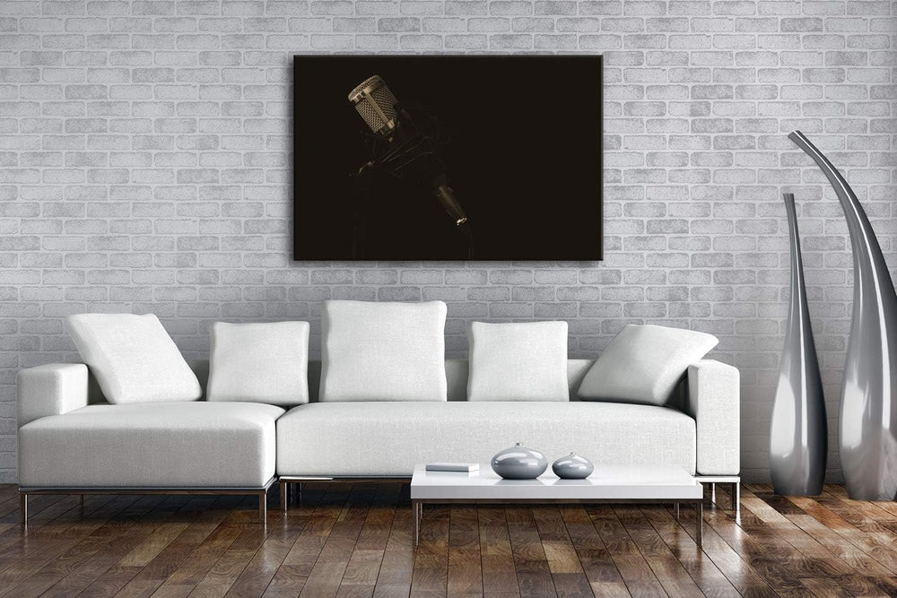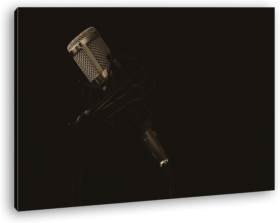 Mikrofon im dunklen Tonstudio Format: 80x60 Effekt: Sepia als Leinwand, Motiv fertig gerahmt auf Ech