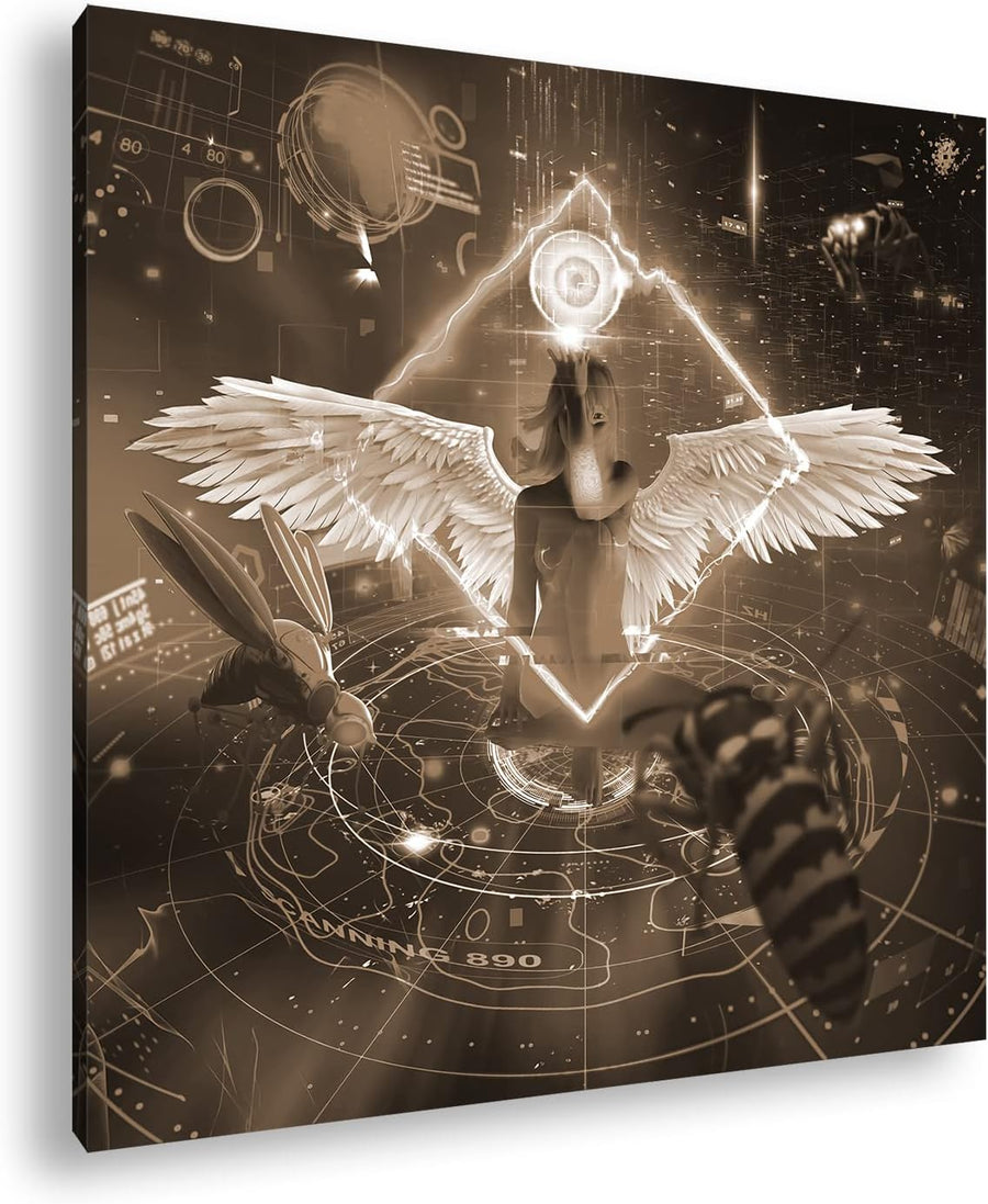 Neon Engel Effekt: Sepia Format: 60x60 als Leinwandbild, Motiv fertig gerahmt auf Echtholzrahmen, Ho