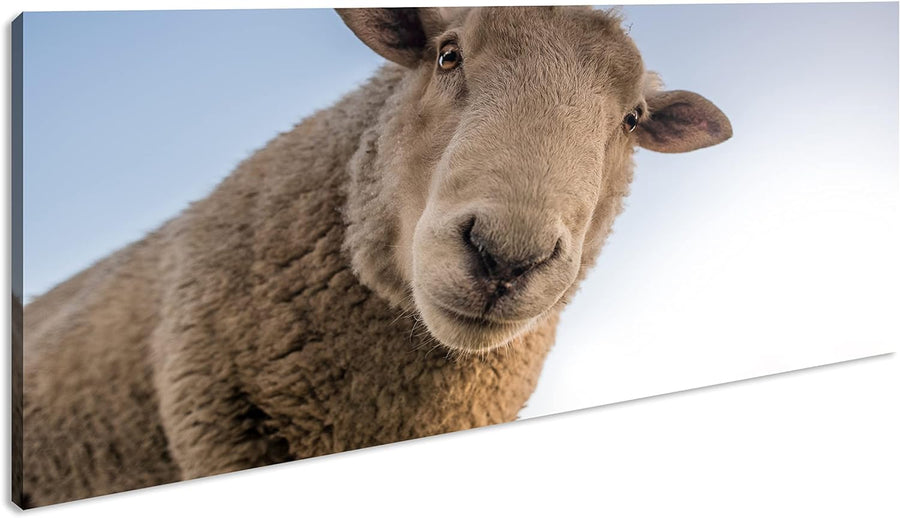 lustiges Schaf Panorama 120x60 cm als Leinwandbild, Motiv fertig gerahmt auf Echtholzrahmen, Hochwer