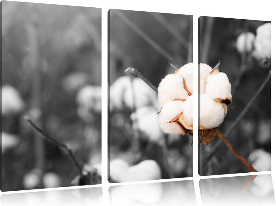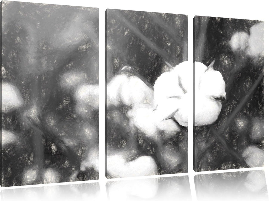 Pixxprint eine ausgereifte Knospe voller Baumwolle Kunst Kohle Effekt 3-Teiler Leinwandbild 120x80 B