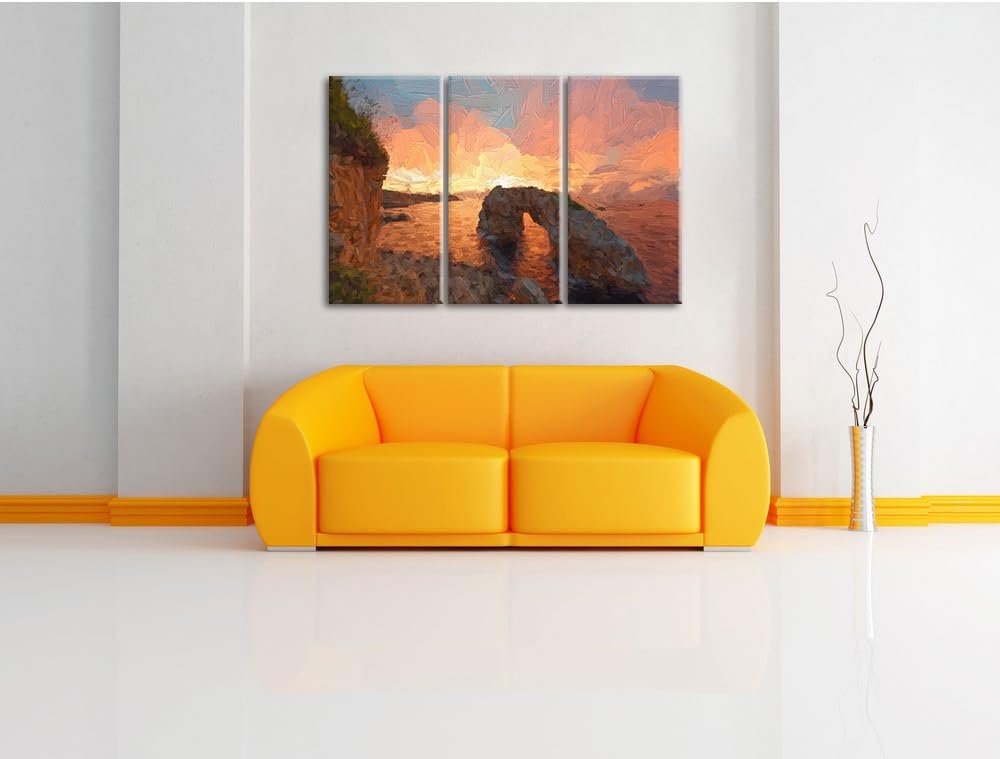 Pixxprint EIN Tag beginnt - Es Pontas Kunst als Leinwandbild/Grösse: 3 Teilig (120x80 cm) cm/Wandbil