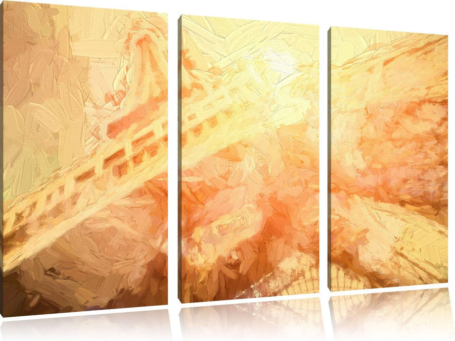 Pixxprint Eiffelturm in Paris Kunst / 3-Teilig/Gesamtmass 120cm Leinwandbild bespannt auf Holzrahmen