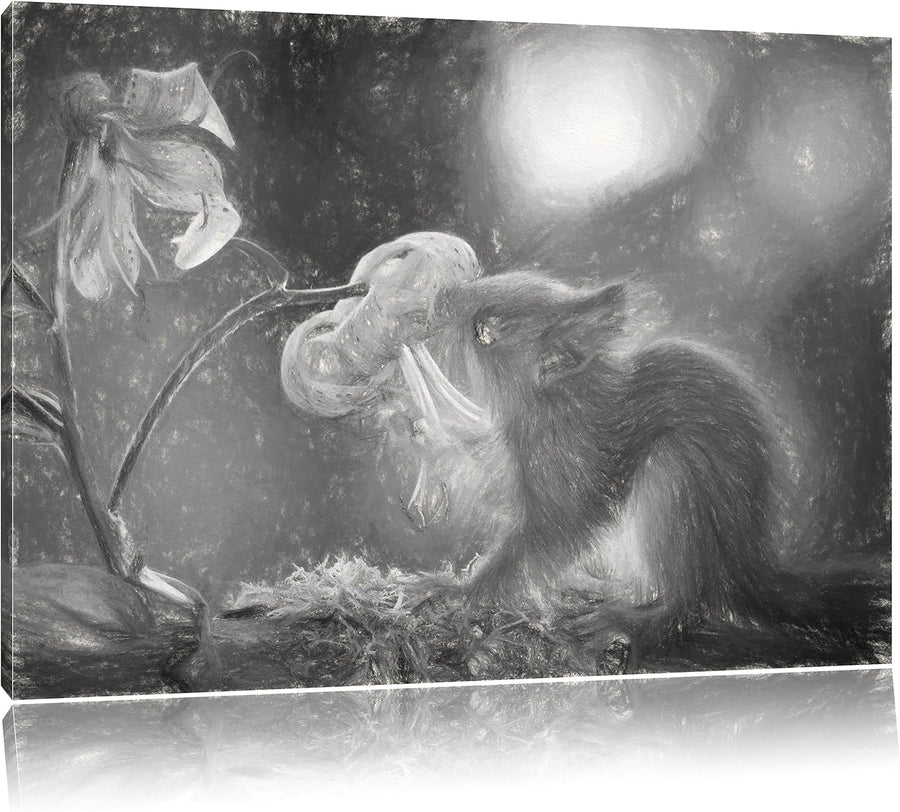 Pixxprint Eichhörnchen riecht an Einer Blume als Leinwandbild/Grösse: 100x70 / Wandbild/Kunstdruck/f
