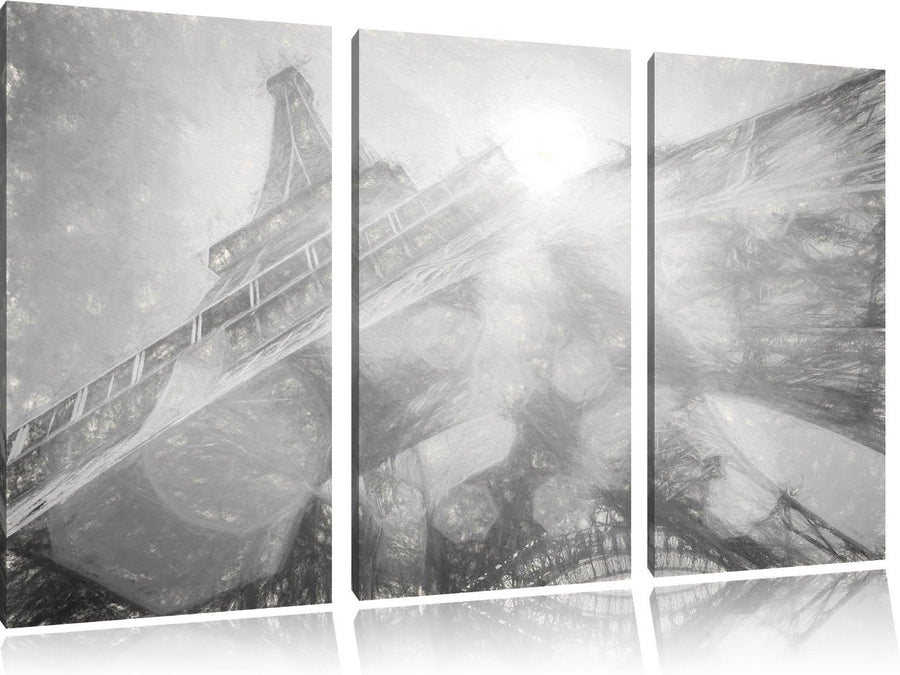 Pixxprint Eiffelturm in Paris Kunst Kohle Effekt 3-Teiler Leinwandbild 120x80 Bild auf Leinwand, rie