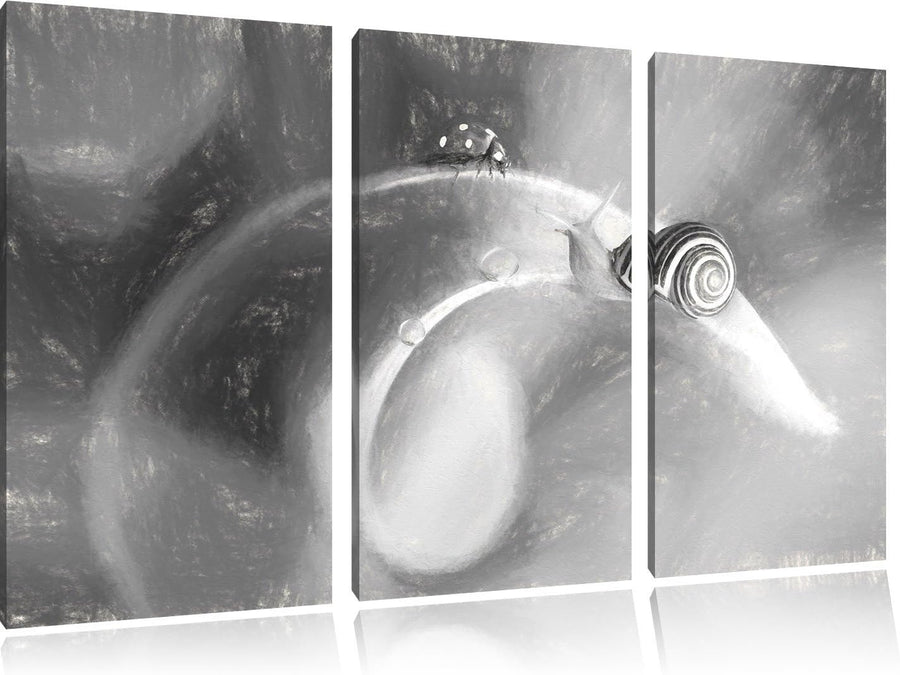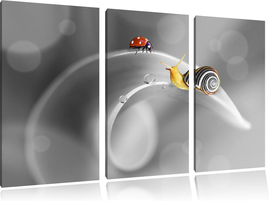 Pixxprint eine Schnecke und Marienkäfer / 3-Teilig/Gesamtmass 120cm Leinwandbild bespannt auf Holzra