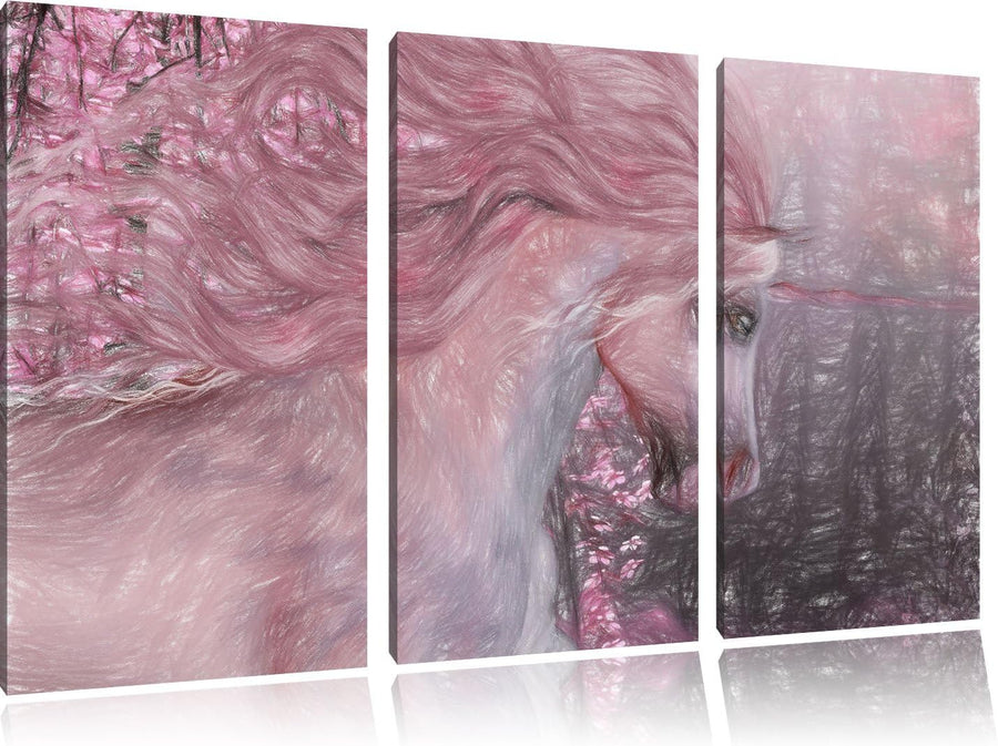 Pixxprint Einhorn als Leinwandbild/Grösse: 3 Teilig (120x80 cm) cm/Wandbild/Kunstdruck/fertig bespan