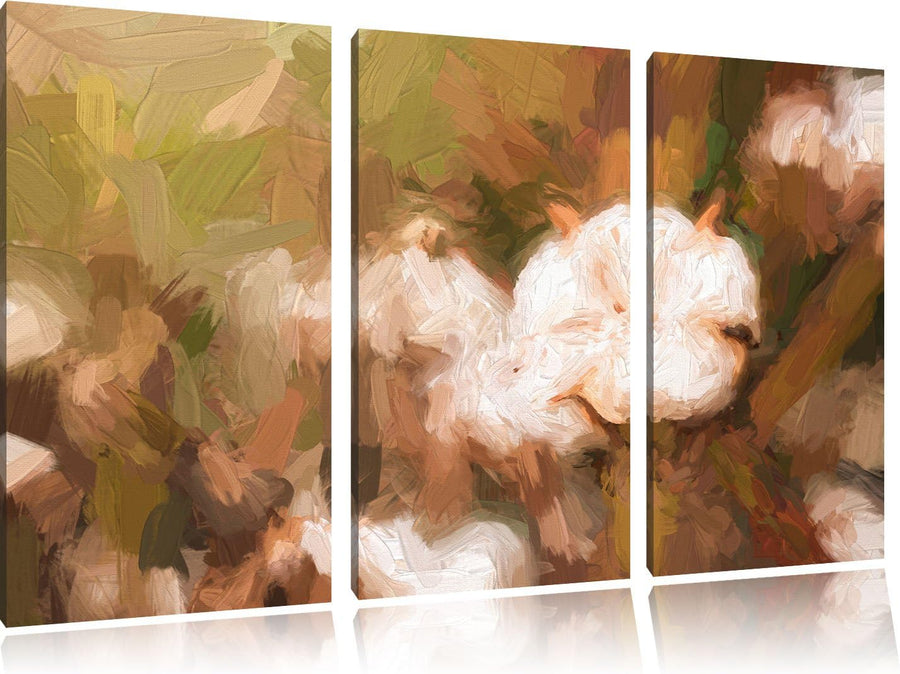 Pixxprint eine ausgereifte Knospe voller Baumwolle Kunst Pinsel Effekt 3-Teiler Leinwandbild 120x80