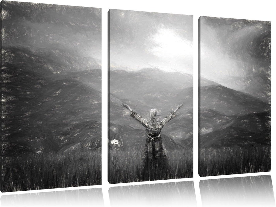 Pixxprint eine schöne Landschaft im Norden Kunst Kohle Effekt, Format: 100x70 auf Leinwand, XXL ries