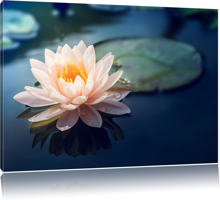 Pixxprint Eine rosa Lotusblume in Teich als Leinwandbild/Grösse: 70x70 cm/Wandbild/Kunstdruck/fertig